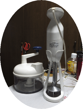 自分が作る時には、このどちらかのmixerを使うのですが、洗う手間で右側のアメリカ製のハンディ・ミキサーを使用しています。
